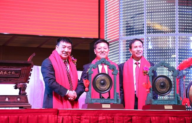 上图为陈庆堂董事长和福清市人民政府张帆市长、上交所领导共同敲响开市铜锣