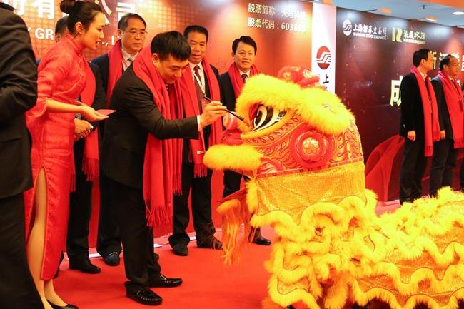 上图为陈庆堂董事长在《成功上市纪念墙》上签名留念