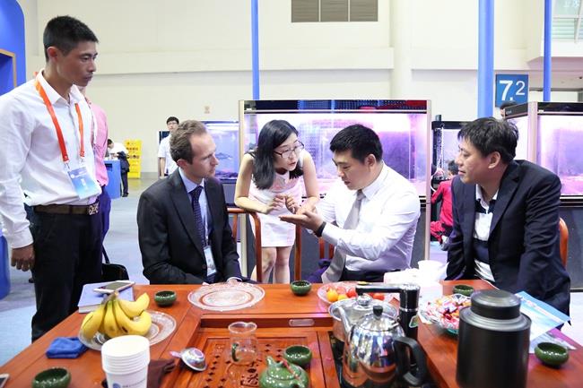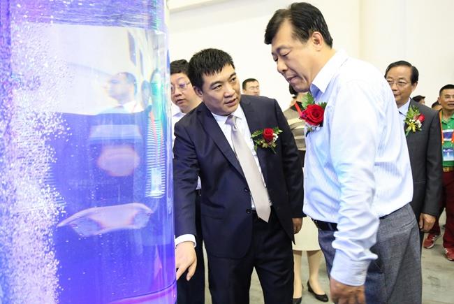上图为陈庆堂董事长向于康震副部长介绍好博(中国)科技产品及相关水产品