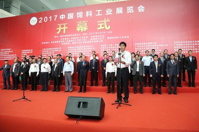 上图为福建省农业厅党组成员、总畜牧兽医师梁全顺在展会开幕式作重要讲话
