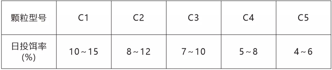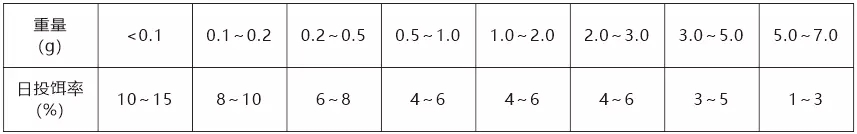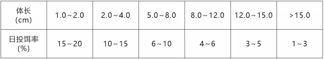 注:具体投喂量根据温度、水质和摄食情况适时调整。